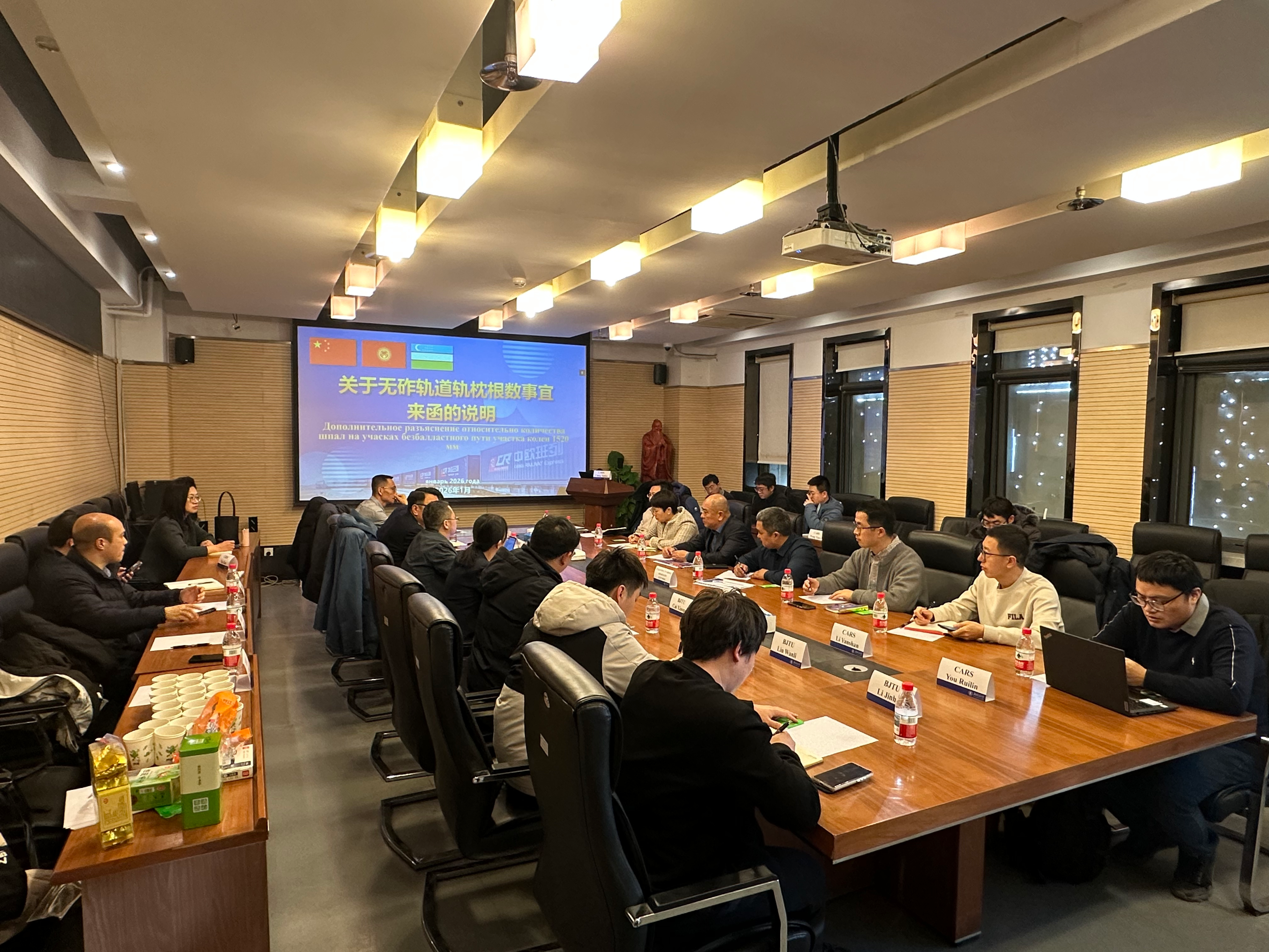 2026年1月12日上午,中吉乌铁路轨道技术研讨会在永利皇冠永利官网 702会议室顺利召开。吉尔吉斯国家铁路公司资本建设管理处处长朱马巴耶夫·雷斯库尔别克、吉尔吉斯斯坦国立技术大学副教授艾达拉利耶夫·阿尔腾别克、永利官网-永利皇冠 党委书记白雁、科学技术研究院副院长蔡小培、中国铁路设计集团有限公司副总工程师王文博以及中国铁路国际有限公司、中国铁道科学研究院、中铁第一勘察设计院集团有限公司等单位项目组代表出席会议。会议由中吉乌铁路项目部副总工程师陈建国主持。