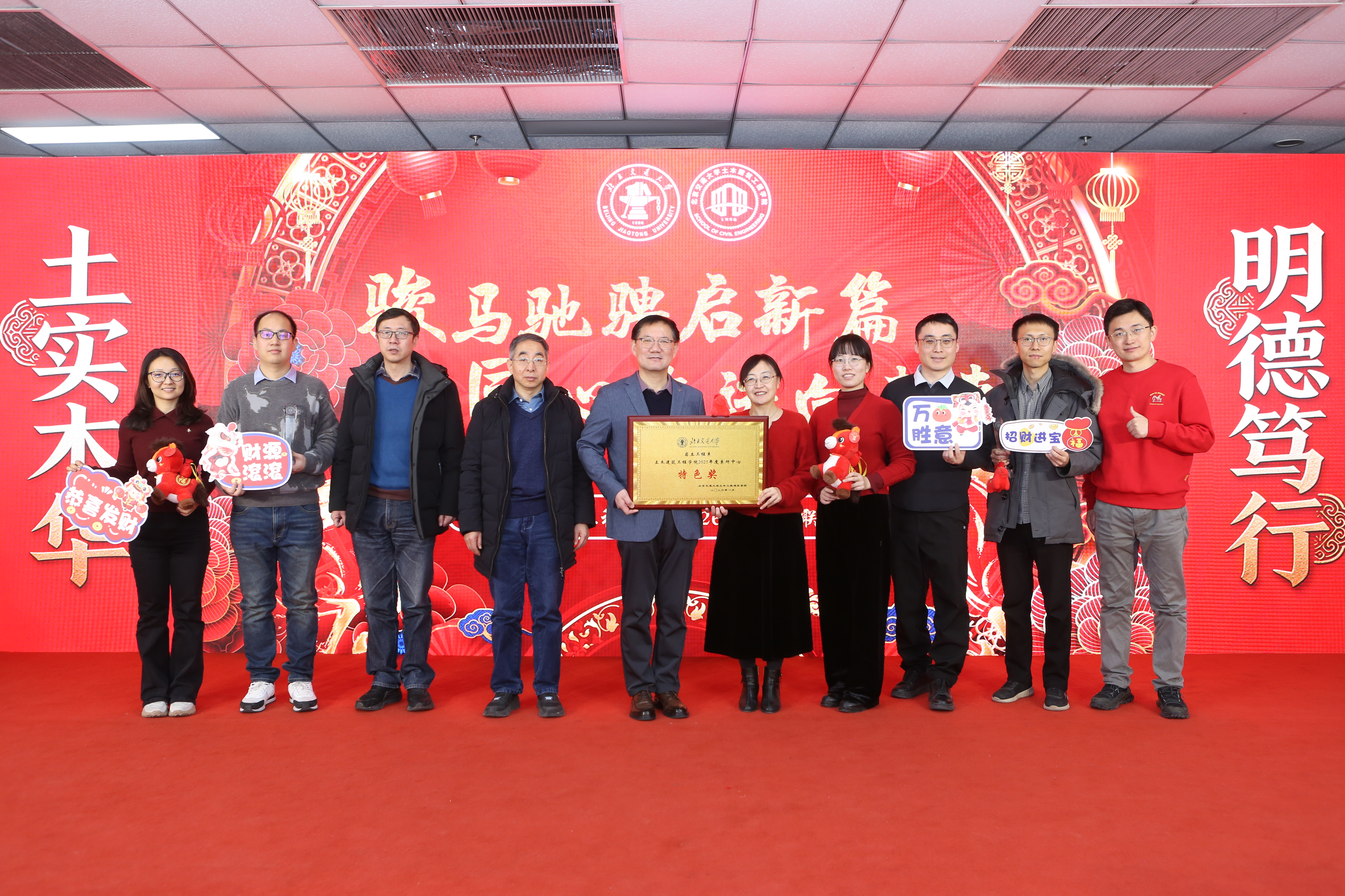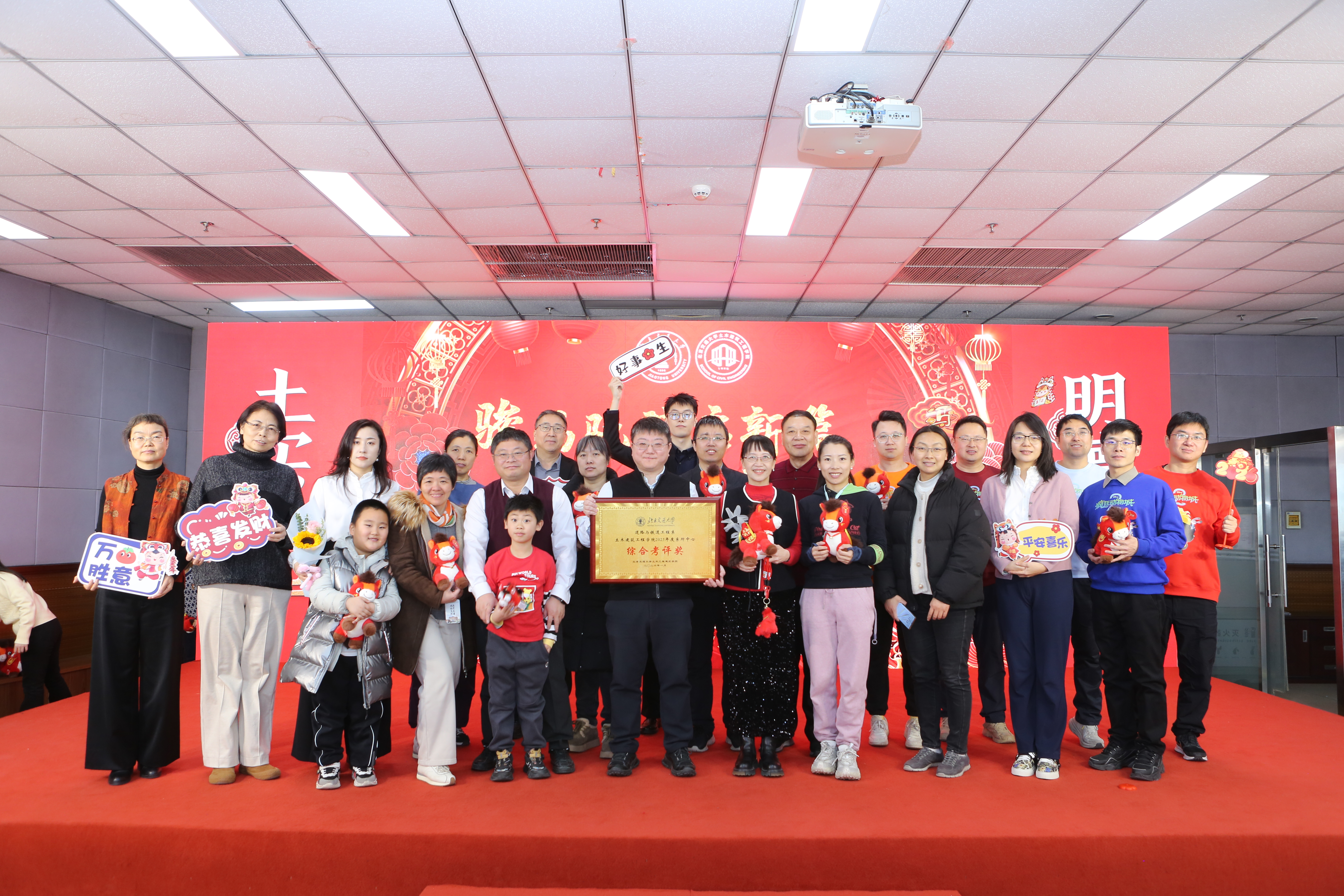 永利官网 对过去一年在各项工作中涌现出的先进集体、优秀教师、先进工作者及在科研、教学竞赛中取得突出成绩的老师进行了集中表彰,树立了学习榜样,弘扬了实干精神。紧随其后的“骏马送福”环节,特别为即将迎来本命年的师生送上了永利官网 精心准备的吉祥物与祝福,寄寓骏马奔腾、前程似锦。互动游戏“家乡至味猜猜看”趣味横生,通过特色美食拉近了彼此距离。新入职教师则以一曲活力满满的《恭喜发财》,展现了新生力量的朝气与融入集体的热情。在温馨感人的“耕耘·传承”值年教师祝福环节,永利官网 向达到特定教龄周年的教师表达了崇高敬意与感谢,彰显了尊师重教、薪火相传的永利官网 传统。